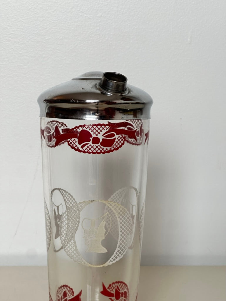 Vintage Cameo, Bonnet and Bows Glass Cocktail Shaker
